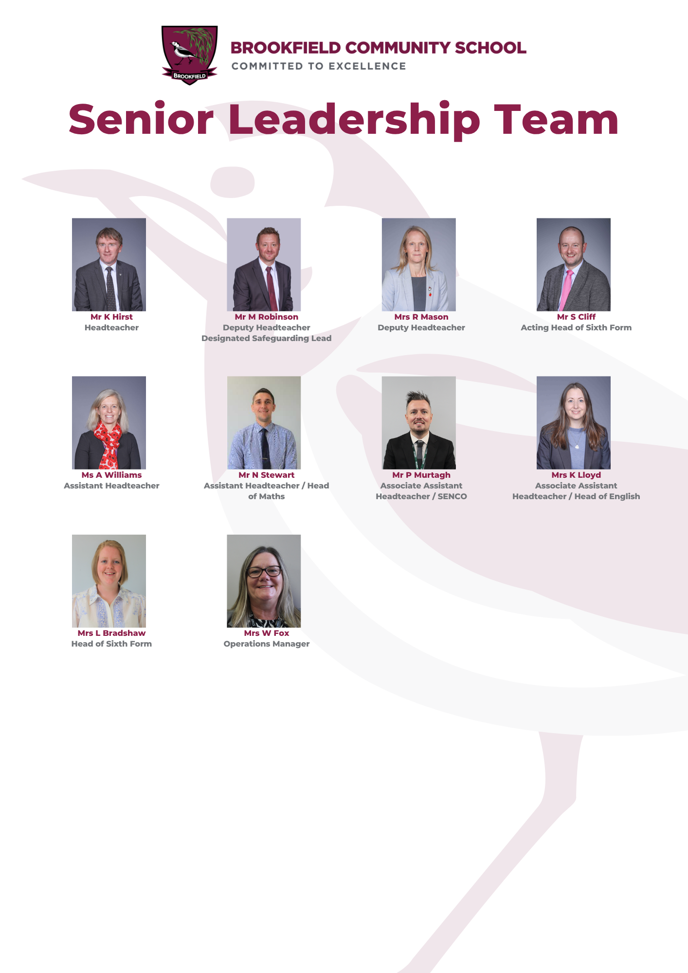 Our Senior Leadership Team is made up of the following members of staff: